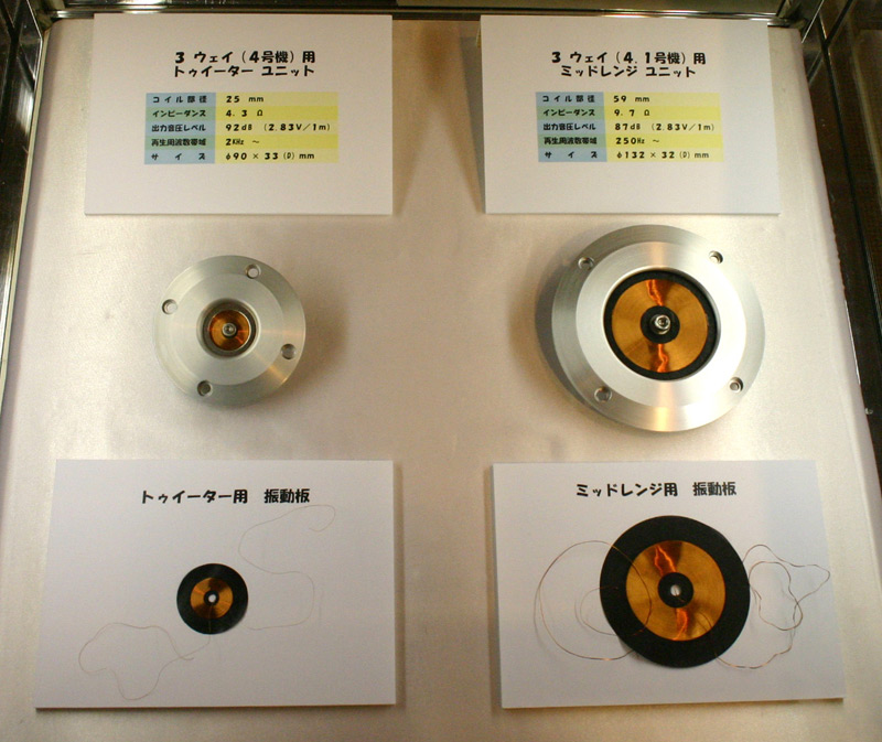 | ■趣味のオーディオを極める、「40cmウーファー」の提案 フォステクスカンパニー 小型・軽量化の時代にあって、何でも小さく軽くなっていくこの時代。その余波はスピーカーにもおよび、30cm以上のウーファーを搭載したスピーカーは希少になりました。しかし、趣味のオーディオの世界のこと、低域の豊潤さを求め、やはりさらに大きなウーファーの音が恋しいときもあるでしょう。そんな方のためにフォステクスは、「40cmウーファー」を開発、平成19年初旬に発売する予定だそうです。 また昨年、参考出品で話題を呼んだ、テーブルに置くとテーブル全体を振動版にして音楽を奏でるアクティブ・コンタクト・スピーカー「GY-1"エア"」がついに商品化。ブースにも出品されています。