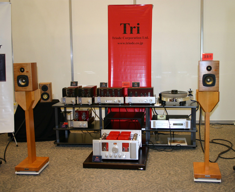 | ■美しい真空管アンプと手作りスピーカーから、清涼な音の風が吹く トライオード 冴え渡る赤いポイントカラーが印象的なトライオードの真空管アンプ。美しく、趣味性の高いデザイン、真空管ならではの温かみのある味わいのある音、そして比較的低価格で入手できることから高い人気を呼んでいます。今回は、パストラル・シンフォニーのスピーカー「Cz302ES」を使って試聴を実施。トライオードのアンプとは大変相性がよいようで、清涼な風が吹き抜けていくようです。試聴するお客さんも感心しながら聴いていました。