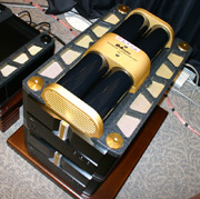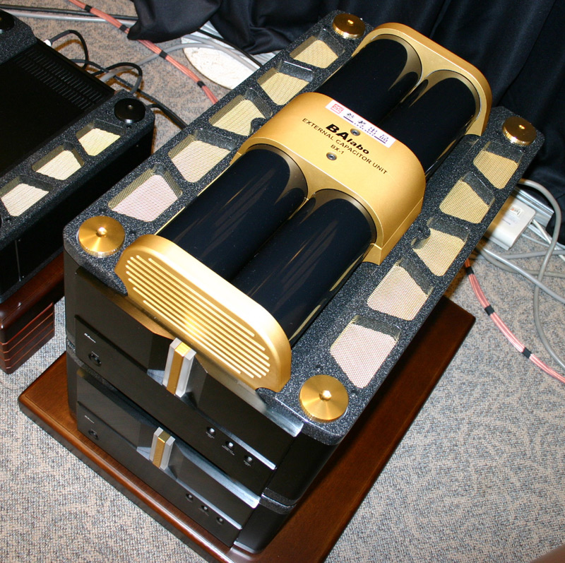 純日本製スーパー・ハイエンドの世界 〜「ブリッジオーディオラボ」の超弩級アンプの驚き ブリッジオーディオラボ 一見してそのスケールの大きな筐体に驚く。聴いてその大胆でダイナミックな音に驚く。ブリッジオーディオラボの超弩級アンプ『BC-1/MK2(コントロールアンプ)』『BP-1/MK-2(パワーアンプ)』の音は、さまざまな海外オーディオブランドと比較しても高い評価を得ているものです。今回は参考出品としてパワーアンプのオプション「EXTERNAL CAPACITOR UNIT」も公開。これは何と100Wの電球が7秒間も点灯するほどの電力を蓄えるキャパシターで、これを備えることで電源の瞬時供給能力が高まり、音楽表現力が飛躍的に向上するそうです。