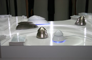 | ■なぜ、この形なのか?この形だとどうなのか? 富士通テン 富士通テンの球形スピーカーをご存知ですか?ロケットのような形状の流線型スピーカー。未来型のクールなデザインが目を引きます。でも、エポックなのは外見だけではありません。実は、音の理想を突き詰めたらこの形が必然だったとか。いったいどんな音がするのか聴いてみたくないですか?ブースでは、現在、高い評価を得ているサブウーファー「TD725sw」も使い、球形スピーカーでマルチチャンネルのサラウンドを楽しめます。