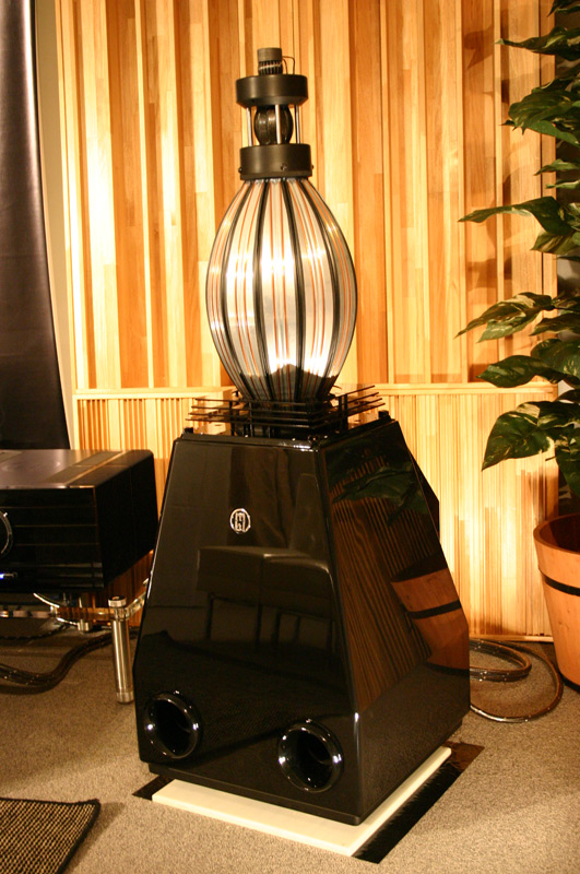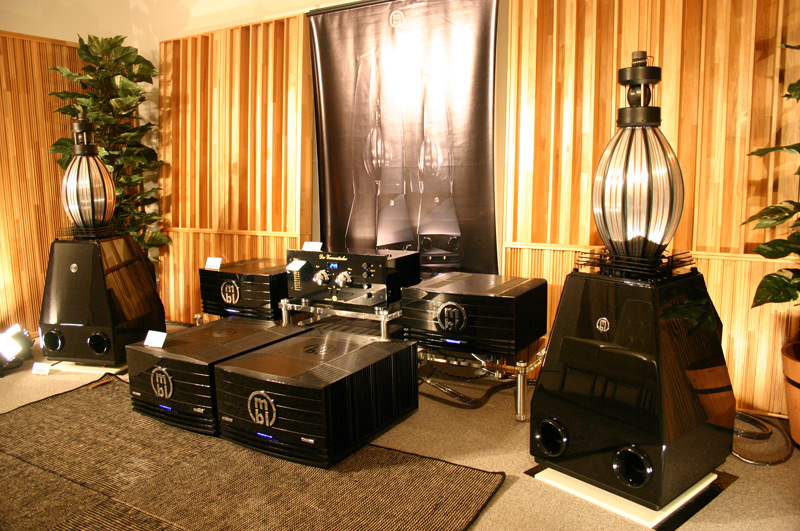 | ■ドイツのハイエンド・オーディオブランドの美しい呼吸球スピーカー mbl (エム・ビー・エル) エム・ビー・エルは、会場の端の階段を上がった目立たないところにあり、ブースの閉ざされたドアも「開けてもいいのかな?」と思わせる雰囲気があります。でも、ここを訪れずに帰るのは、大変もったいない話。ぜひ、ドアを開けて中へお入り下さい。部屋の中には美しくも、崇高なデザインのオーディオ製品の数々。ドイツのオーディオ・ブランド「mbl」の製品です。楽器から発せられる直接音と間接音を忠実に再現し、自然な音場を生み出すスピーカーシステムを始め、夢のような究極のオーディオの世界を楽しめます。