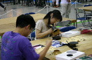 | ■お子様や女性の参加も集めて、今年も大好評 工作教室 好評の工作教室は、初日から女性やお子様連れの家族も参加され、大変な人気を呼んでいました。明日以降も以下のスケジュールで開催されます。ぜひ、ご参加下さい。 スピーカー工作教室(フォステクス)毎日15:00〜16:00 新エジソン蓄音機工作教室(学研) 毎日12:30〜13:30 各回25組 ※各回開始60分前に整理券を配布します