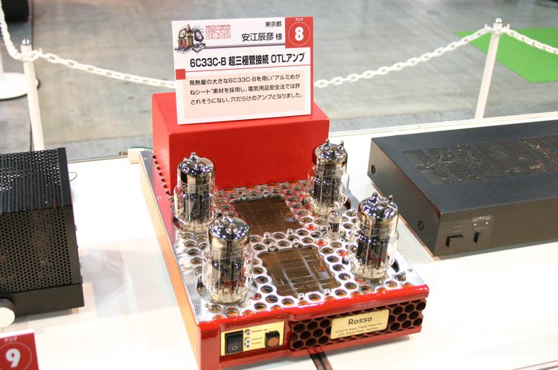 | ■往年のオーディオファンによるケンケンガクガクの自慢大会! 自作オーディオ自慢大会 今年の新企画、自作オーディオ自慢大会は、往年のオーディオファンに大注目を受けました!オーディオに対する趣味性溢れる会話が飛び交いケンケンガクガク。出品された製品も、まさかアマチュアが作ったとは思えない高度なものが多く、実に充実した内容のブースになっていました。