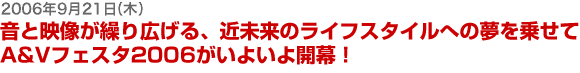 明日も10時から開場! 友人や恋人同士、そして家族でも 楽しさいっぱいのA&Vフェスタ2006に、ぜひお越し下さい |