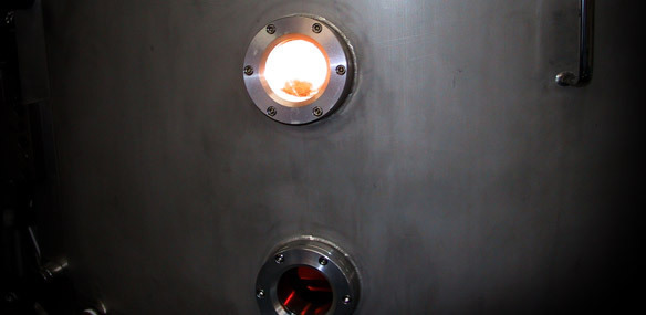 サファイアの製造方法は様々な方法がありますが、アダマンド並木精密宝石ではEFG法(Edge-defined Film-Fed Growth Method)という製法を用いて単結晶サファイアを製造しています。これはルツボの中に酸化アルミニウムの粉を入れ、高熱で熱し、融けた酸化アルミニウムをダイ(サファイア形状を制御しながら結晶を育成させる型)の上部に上昇させ、その融液に種結晶を接触させ、引き上げ、サファイアを結晶化させていく方法です。
