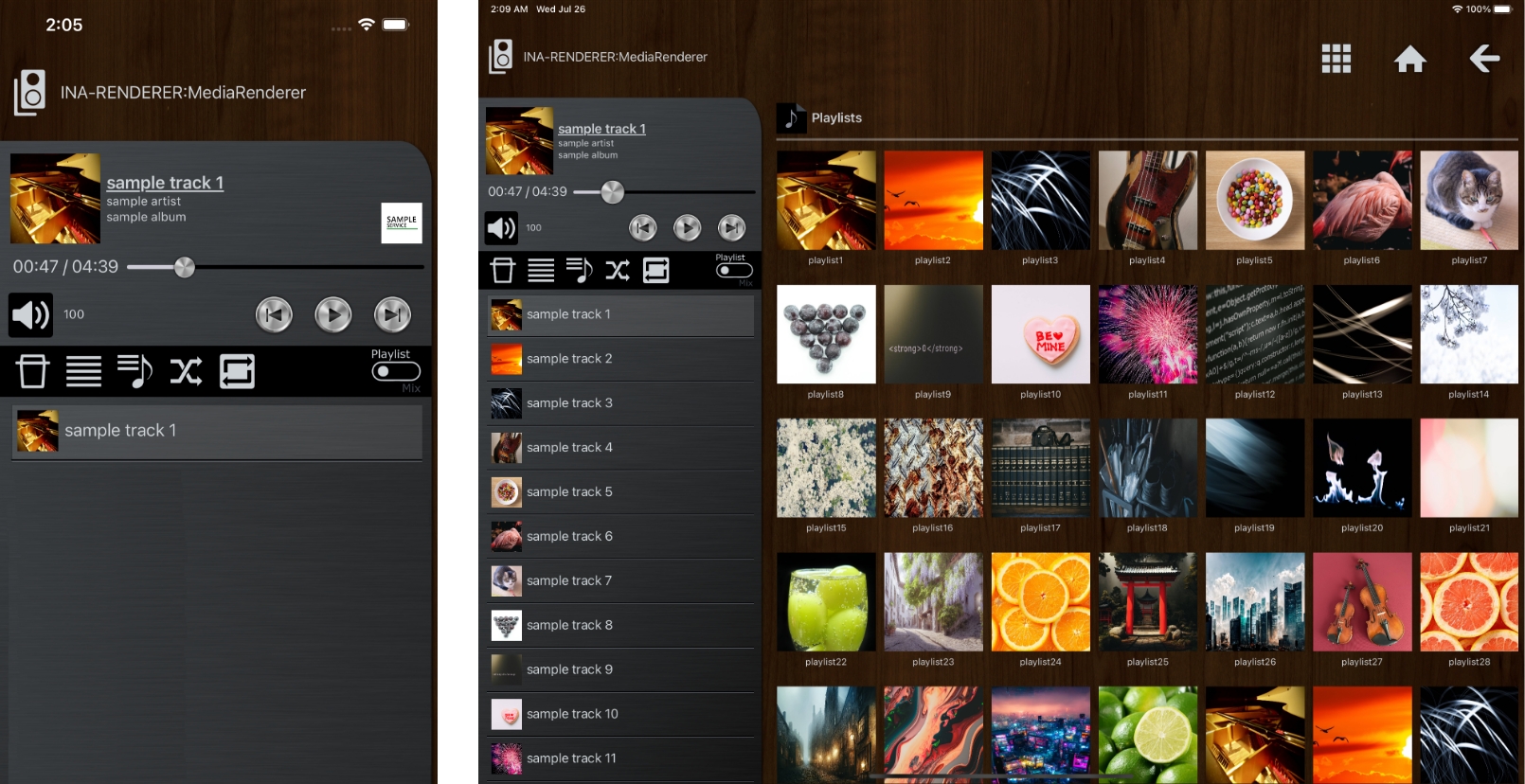 専用コントロールアプリケーション「Taktina」では、技術的な完成度に加え、ユーザビリティの向上にも注力しました。ストリーミングサービスとローカルライブラリーの統合管理、直感的な操作性、そして高度な音楽ライブラリ管理機能を実現。スマートフォンやタブレットから快適に操作できる洗練されたUIにより、エンドユーザーに新しいリスニング体験を提供します。