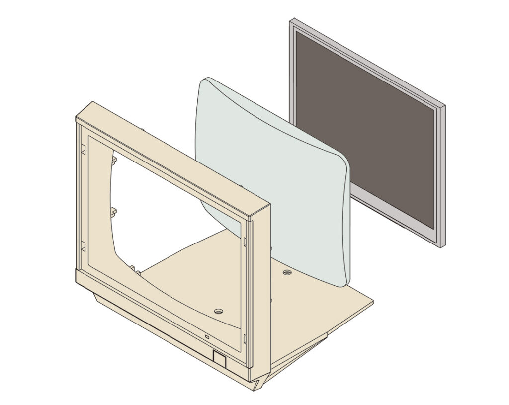 さすがにブラウン管モニターを製作することは出来ませんし、ブラウン管モニターのような湾曲を再現するために液晶面を曲げると大変なコストが掛かりますので、液晶パネルの前にアクリルレンズを配置することで光学的にブラウン管の歪みを再現しています。HDMI入力の他にアナログRGB入力も備えており、付属の変換ケーブルで15kHz~31kHzのアナログRGB映像を映すことが可能です。