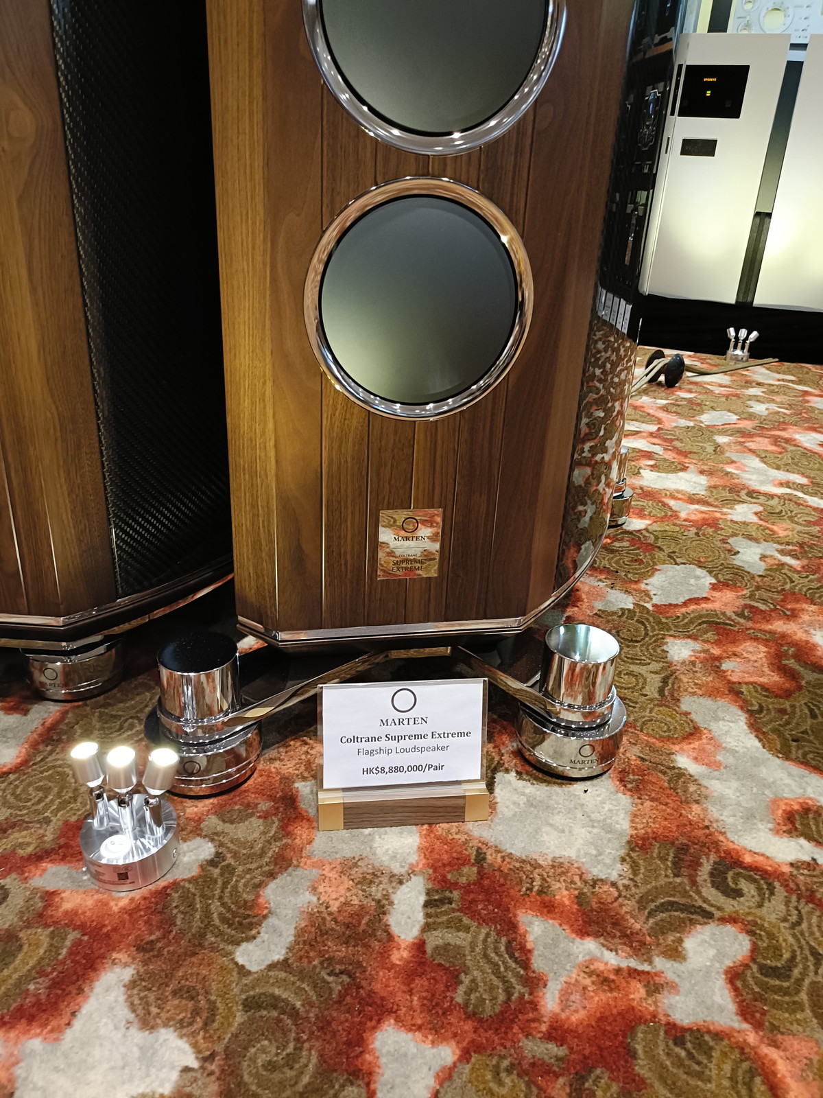 今回の香港オーディオショウで最も注目を集めていたのは、4Fの主賓会場「CHANCELLOR ROOM」に展示されていた、Marten社(スウェーデン)の超高級スピーカーでした。888万HKD/ペア、日本円にして約1.6億円という驚きの製品で、まるでライブ会場にいるかのような臨場感あふれる音場を体験することができました。価格も別次元ではありますが、最高峰のオーディオが奏でる音に耳を傾けているだけで、大きな満足感が得られました。