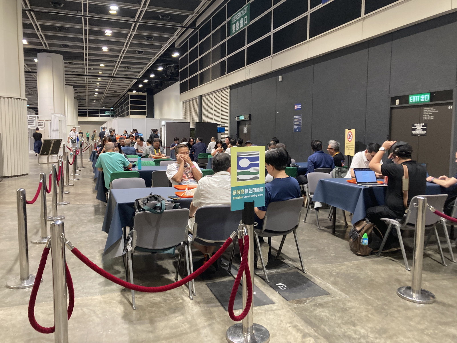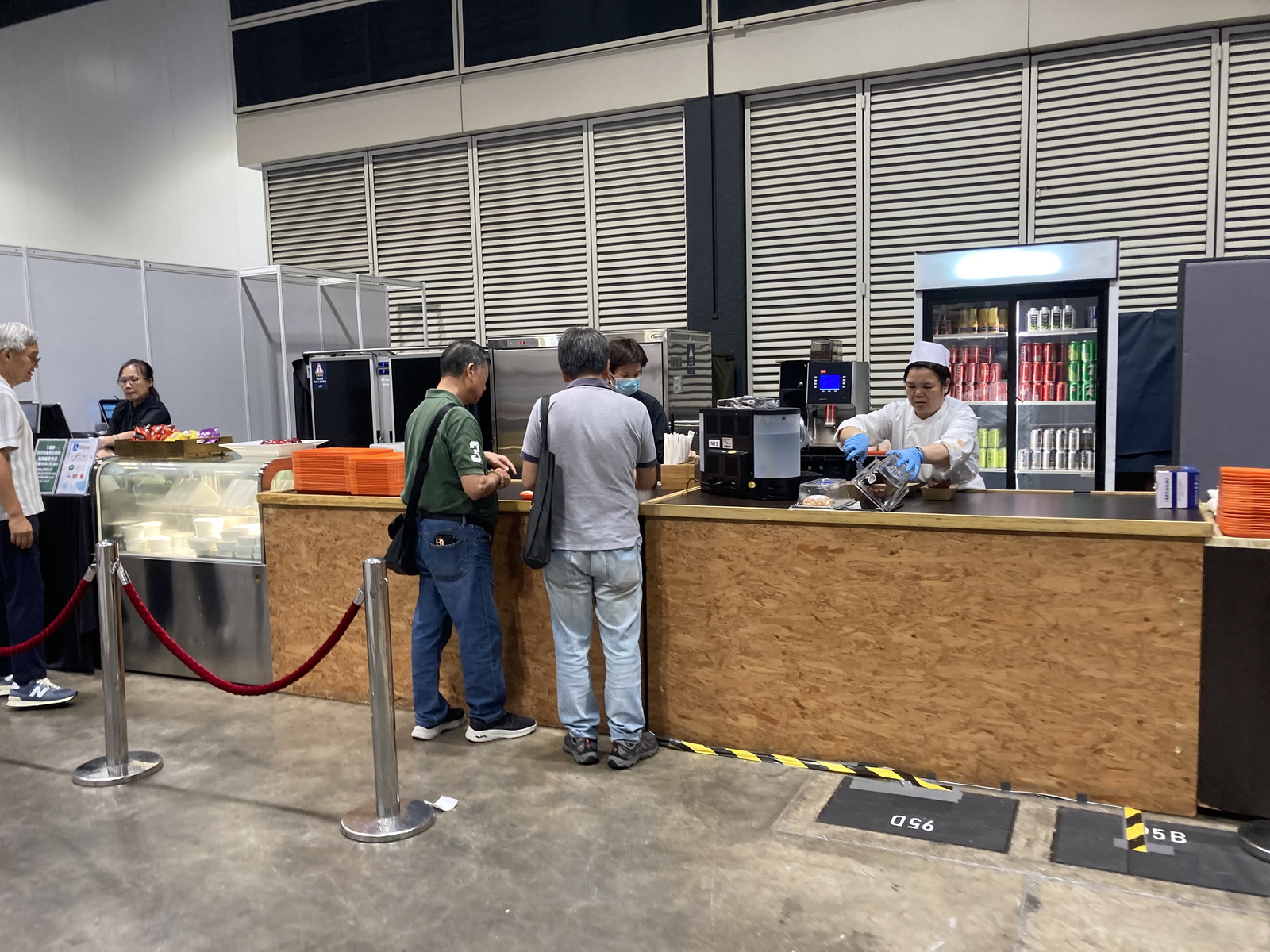 会場規模が大きいこともあり、休憩スペースも比較的充実していました。Hall3 のバックヤードにはカフェ&休憩コーナーが設けられ、広めのテーブルと椅子が配置されており、カフェテリアで軽食や飲み物を買って休憩している来場者の姿が多く見られました。また、2階や4階への移動途中のエスカレーター付近には休憩用のソファが置かれており、歩き疲れた来場者が一息つく光景も確認できました。