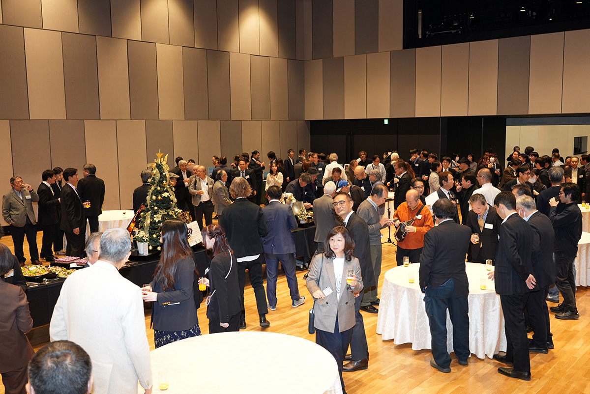 18時半からは、音の日2025懇親会が開催されました。今年は例年にも増して多くの方が懇親会に参加されました。音楽・オーディオの業界忘年会の様相を示すこの懇親会は、プロ音楽録音賞を主催している5団体の関係者、オーディオ協会の会員の皆様、ReC♪STの受賞者など、所属や年齢を超えた楽しい交流が行われました。