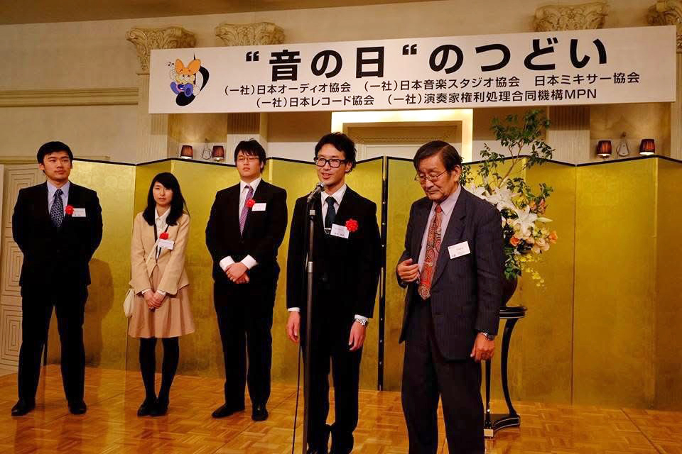 末永)式典的には、金屏風の前で表彰状を受け取る姿の方が相応しいのかも知れませんが、学生たちの表情を見ていると可哀そうなくらい緊張していて、この雰囲気をもっと明るいものに変えたいと、小川会長とよく話をしていたのです。神田スクエアという新しくできたホールにちょうどいい明るい雰囲気を感じまして、それからですね、適度なフォーマル感を残しながら、新しい音の日のイメージを作りあげていくことができました。