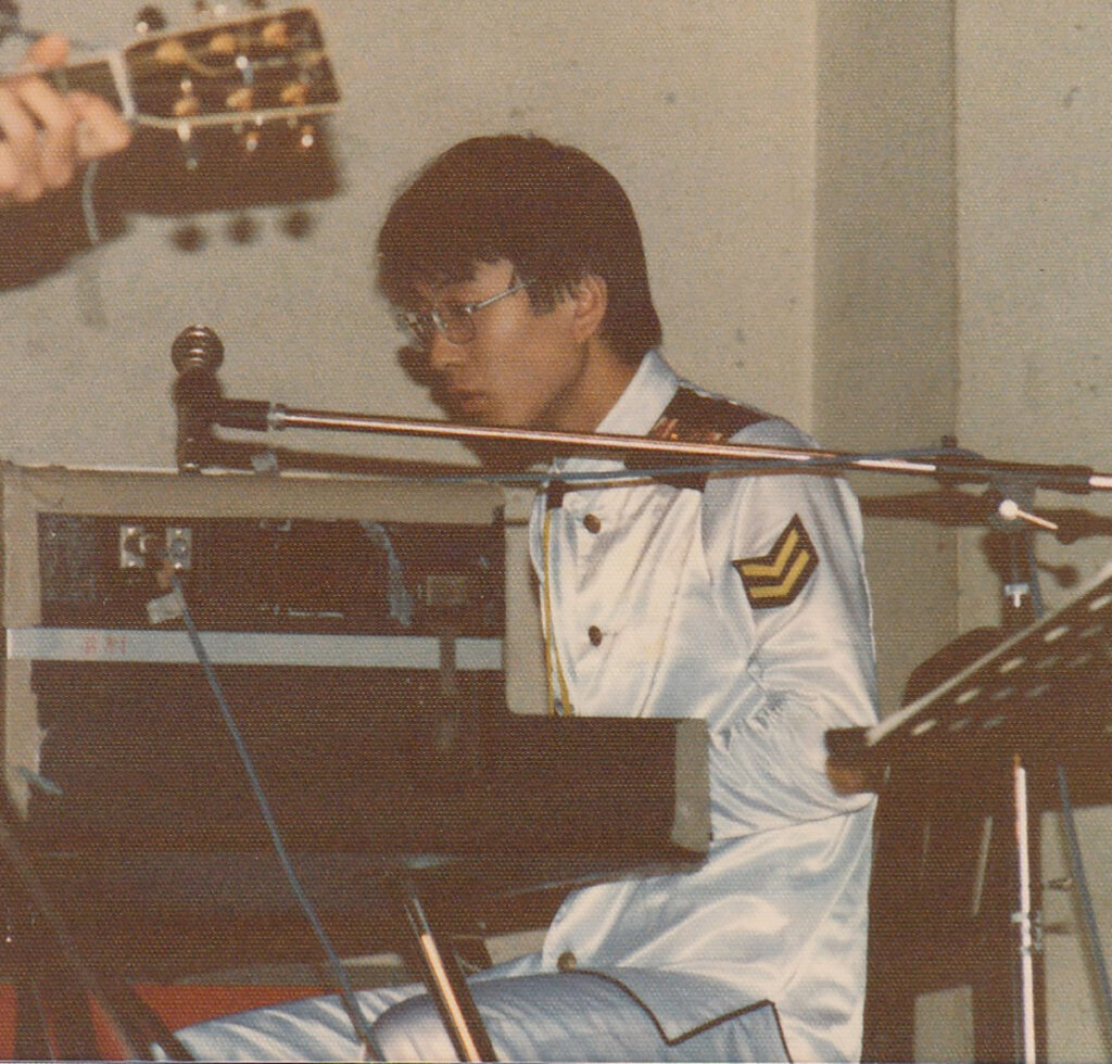 例えば、東京藝術大学でシンセサイザーをはじめとする電子楽器の導入・教育確立の最初期に尽力された白砂昭一先生から、電子楽器の回路学や、坂本龍一氏も履修されたという電子音楽の制作実習について教えていただき(写真6、7)、また同大名誉教授である松本民之助先生のご子息で、後に京都芸術大学音楽学部長に就任された松本日之春先生(以下、日之春先生)から、フランスのパリ国立高等音楽院に留学された際に学んで来られたミュージック・コンクレートをご指導いただく事ができました。日之春先生は、奈良女子大学がお茶の水女子大学と一緒に設置した、日本の女子大学として初めての工学系大学院(生活工学共同専攻)の客員教授を引き受け、設置記念式典に参列して「Bravo!」と大きな声で賛辞を送ってくださいました(補足1)。