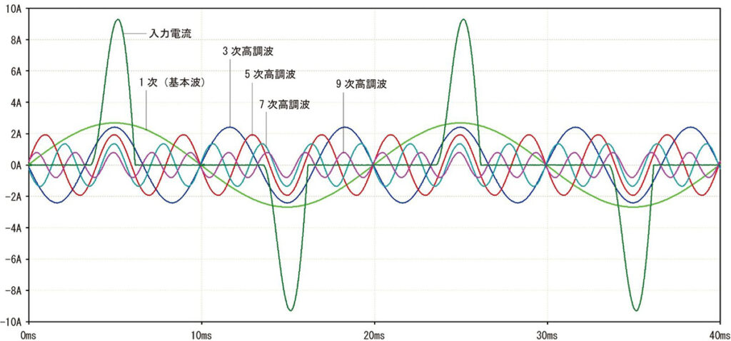 図4 コンデンサーインプット型負荷の入力電流を9次高調波成分まで展開