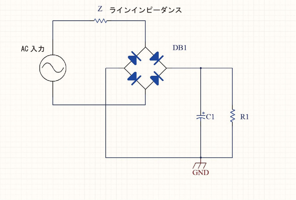 図2にトランスを省略したコンデンサーインプット型負荷の簡易回路構成を掲載します。