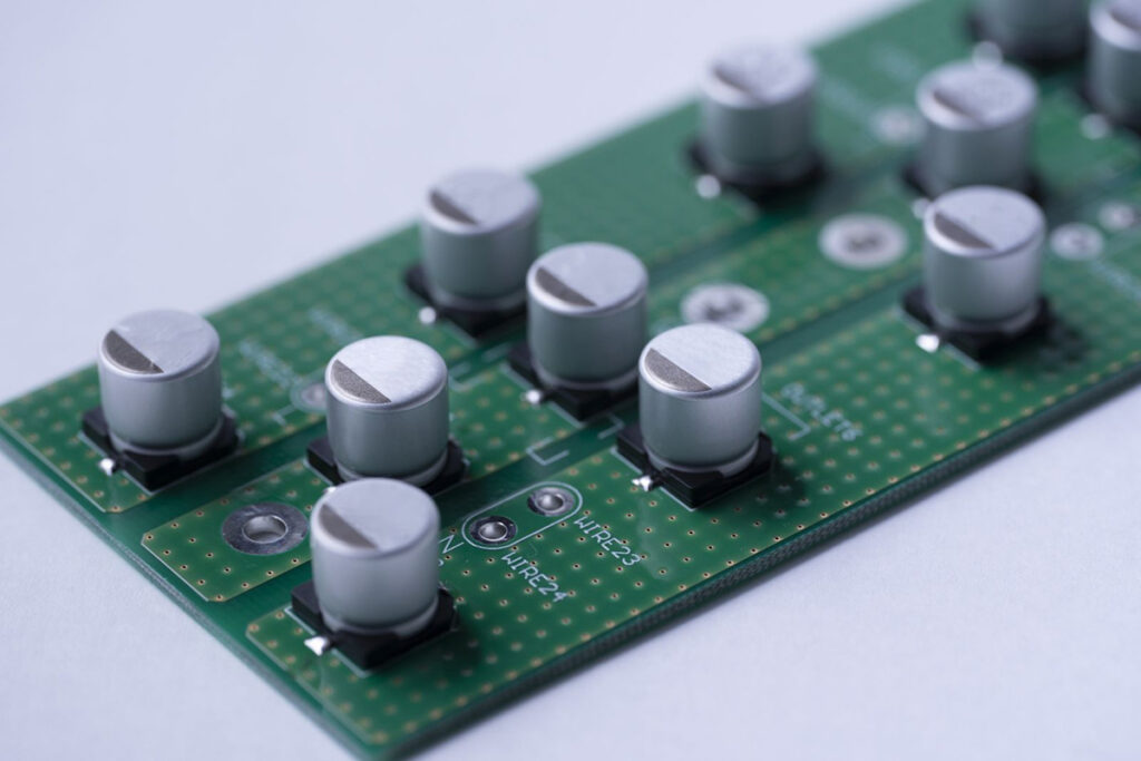 コンデンサーはパワーライン(N:ニュートラル、L:ライブ)、アースラインいずれも、6口の出力コンセント毎に各2個配置され、インピーダンス低減に貢献しています。