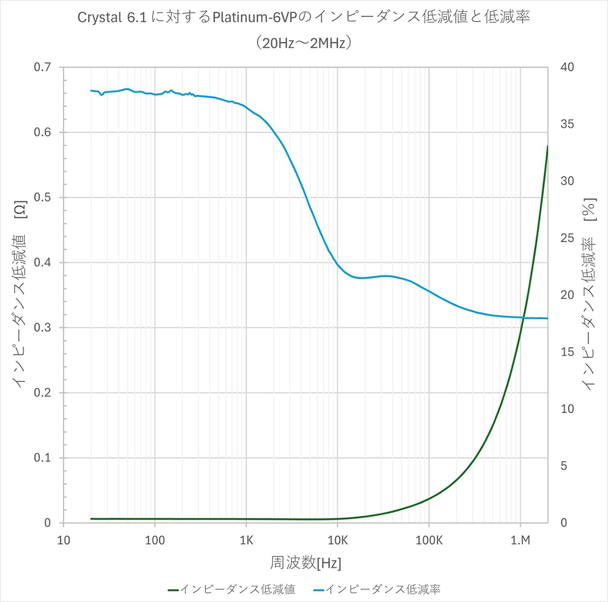 図16 Crystal6.1に対するPlatinum6-VPのインピーダンス低減値と低減率